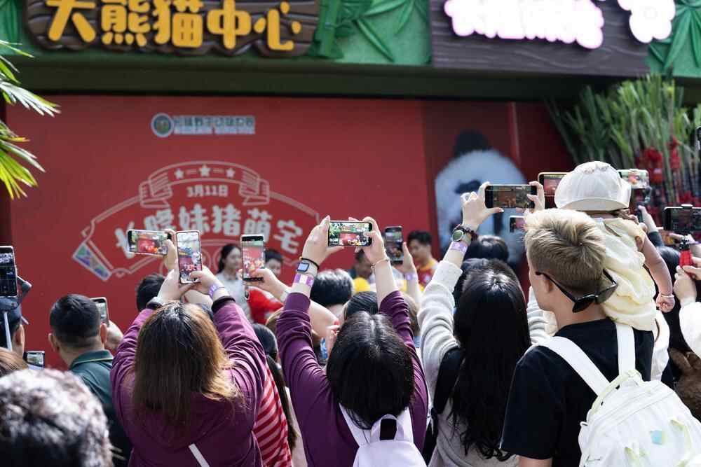 熊猫乐土的喜气也传递给了全园动物伙伴们,大熊猫“妹猪”亲一又团沿途见证乔迁工夫。