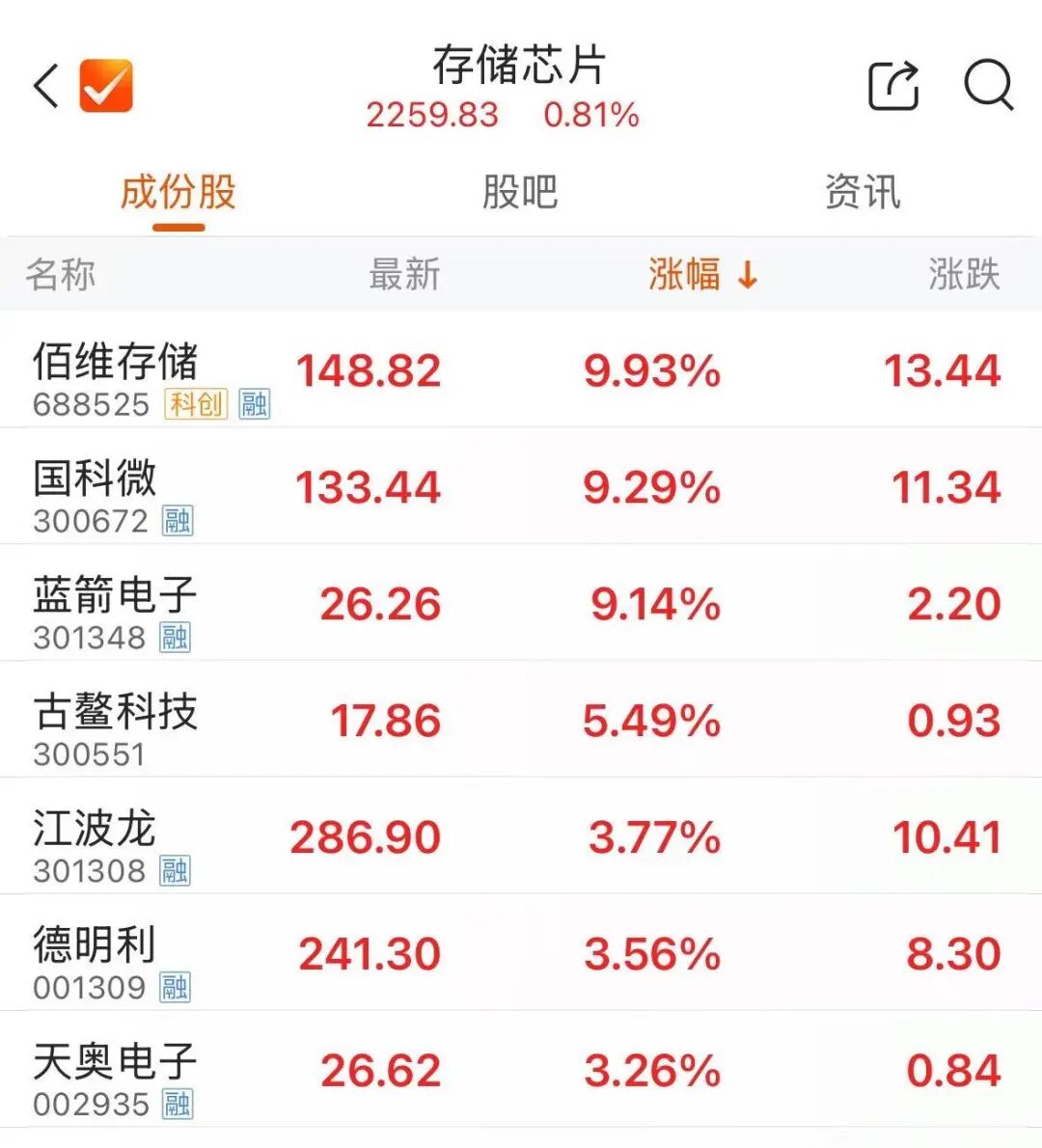 存储芯片板块震撼拉升开云体育,佰维存储盘中涨超10%,国科微、江波龙、德明利、澜起科技等跟涨。