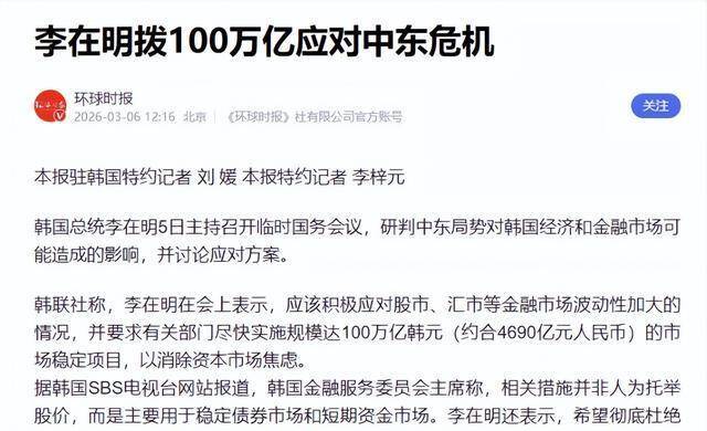 韩国总统李在明径直拍板,拿出100万亿韩元,合东说念主民币快要4700个亿,方针即是在中东危急下,褂讪韩国的经济和金融商场。