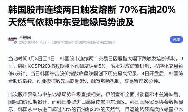与此同期,因为买油需要更多好意思元,商场上好意思元吃紧,韩元就得贬值。韩元一贬值,入口的东西更贵,尤其是动力,价钱又往上顶,通胀就这样滚起来了,到工夫韩国齐会堕入繁芜。因此当好意思伊大战,伊朗文告顽固霍尔木兹海峡后,韩国股市跌超12%。