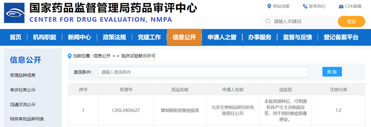 12月10日,由中国生物北京生物成品询查所与中国疾病防护为止中心病毒病防护为止所合营研发的猴痘疫苗,得回国度药品监督处分局签发的药物临床考试批准见知书,注册分类为1.2类鼎新型疫苗。该疫苗是中国科学家自主研发的具有十足自主常识产权的鼎新型疫苗,有望在我国防护和为止猴痘病毒导致的疾病方面发扬伏击作用。