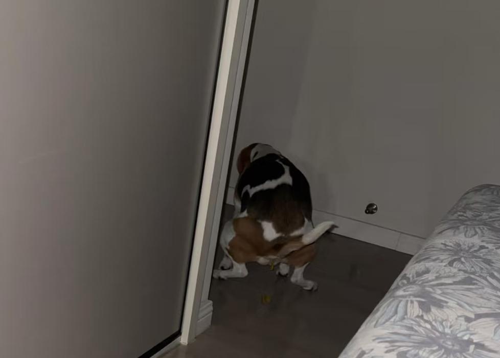 晚上寝息,泛泛不爱进卧室的狗,一会儿跑进来,蹲在就驱动拉粑粑,还把屁股对着我。